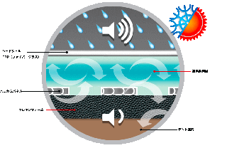 更にその素材の一部がウレタンフォームであることから、雨音に対する吸音材の役割も果たしています